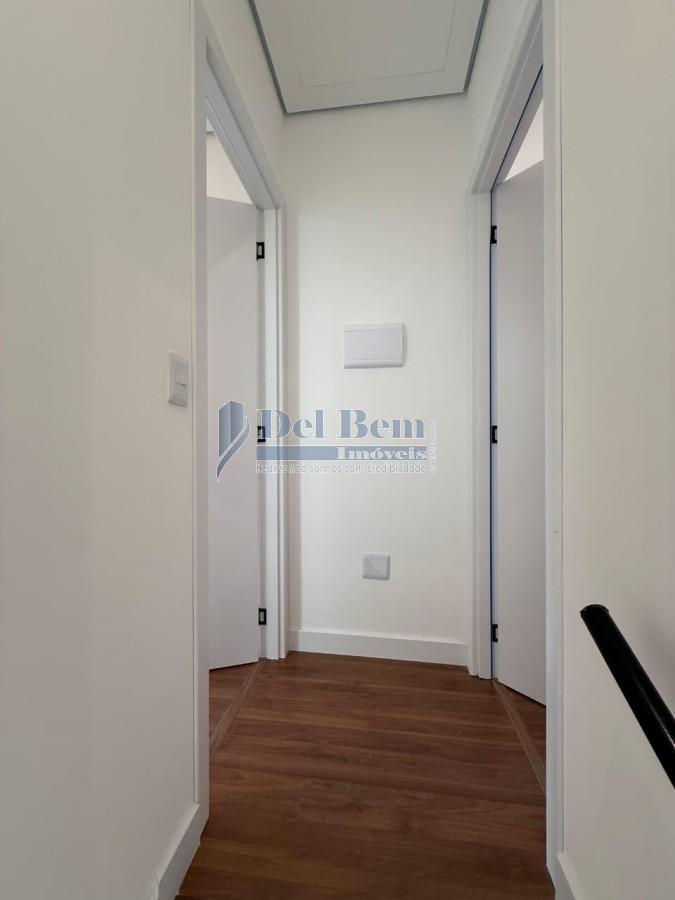 Sobrado novo com 2 suítes . Nos quartos piso laminado e janela com persiana automática na sacada, sala ampla guarda corpo da escada em ripado, acabamento em porcelanato, cozinha ampla todo acabamento em porcelanato, cooktop e depurador suggar, acabamento dos banheiros em porcelanato e iluminação natural, área gourmet com acabamento em porcelanato, teto com drywall, iluminação em led e uma churrasqueira americana a bafo .