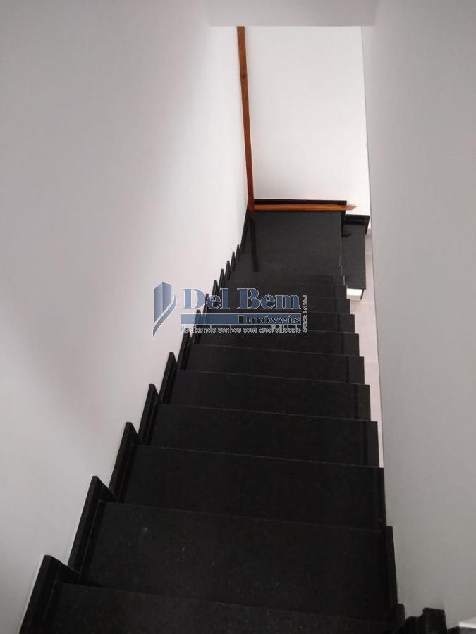 Sobrado novo com 3 amplos dormitórios, sendo 1 suíte com closet e sacada; Banheiro social; Cozinha estilo americana; Copa; Área gourmet; Área de serviço; Sala; Garagem com portão automático e trava; Porcelanato; Laminado click; Eucafloor; Nicho granito; Escada granito; Guarda-corpo inox; Registros DECA; Bacias Celite; Forro rebaixado; Iluminação LED.