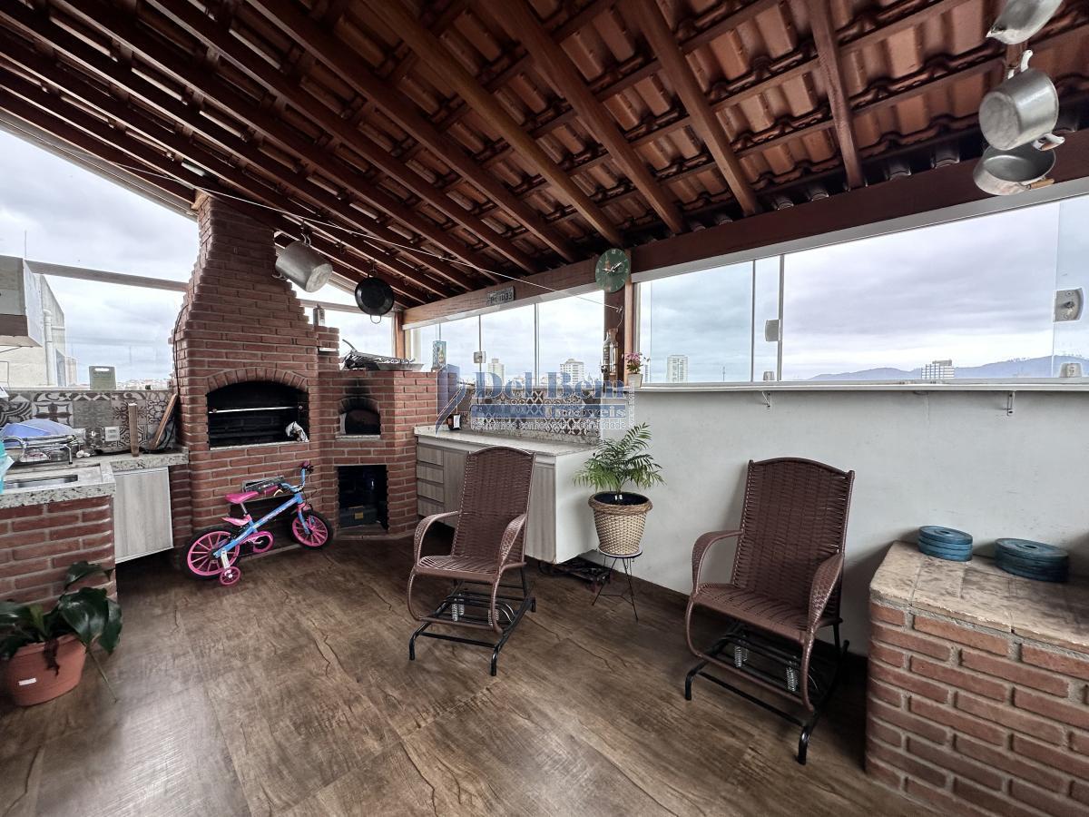 Linda Cobertura Duplex reformada com 03 súites planejadas (1 dormitórios com ar condicionado) e (1 dormitório usado como closet) , Sala de jantar ampla, Cozinha planejada com passa prato, Área de serviço, lavabo, Sala de TV com painel de madeira, Espaço gourmet coberto com churrasqueira, forno de pizza e banheiro, e 02 vagas de garagem.