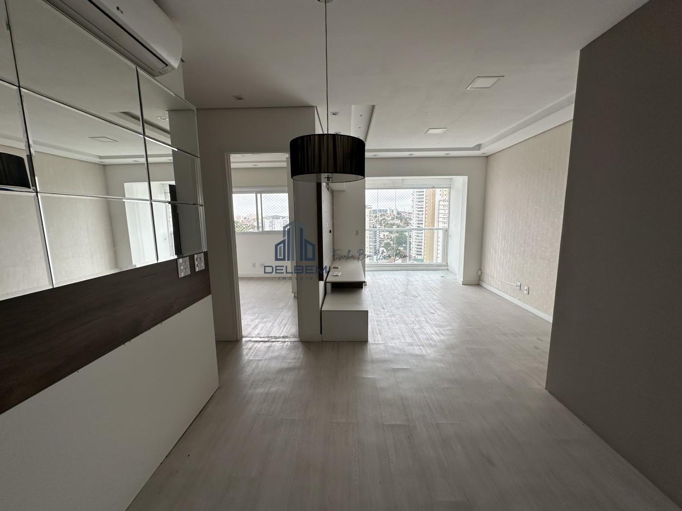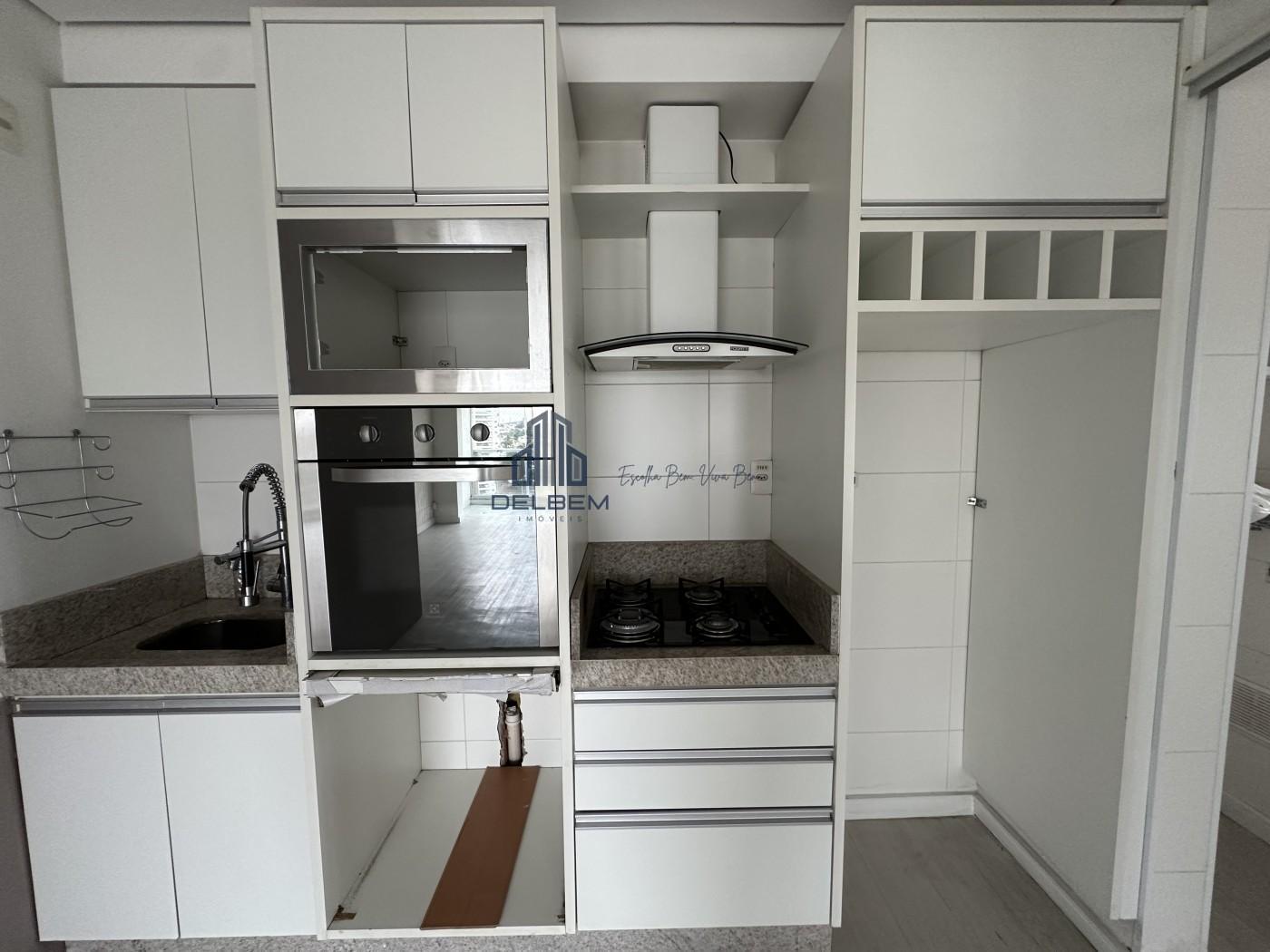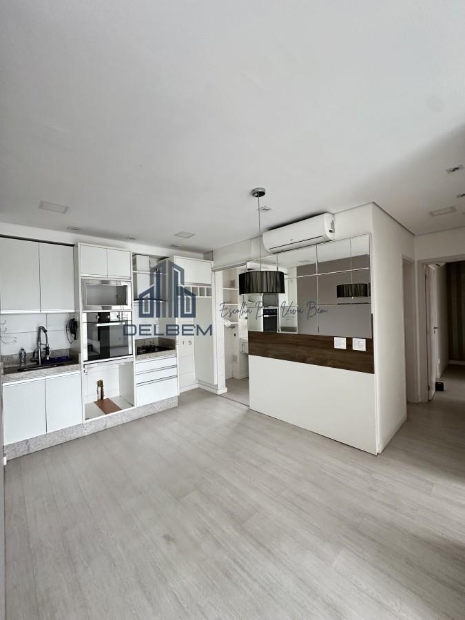 Apartamento com 2 dormitórios sendo 1 suíte com box de vidro , sala com rack planejado e varanda , cozinha com armários planejados, fogão cocktop , coifa e forno, 1 banheiro com box de vidro . Piso porcelanato na sala de estar e dormitórios. Imóvel com planejados em 1 quarto . Aquecimento a gás para o banho e ar-condicionado. Possui 1 vaga coberta .