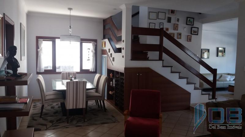 Sobrado com 05 dormitórios com piso de madeira jatobá sendo 03 suítes com armários , salas de estar , sala de TV e sala de jantar com adega , salas com sanca de gesso e luminárias e piso cerâmico , 02 lavabos , cozinha com armários e piso porcelanato , ilha em granito e copa , quintal com ótimo espaço gourmet com churrasqueira e bancada em granito com armários , jardim de inverno , dois corredores laterais , esacada de acesso aos dormitórios em mandeira , janelas de madeira mogno , bilblioteca , escritório , ateliê com cobertura e fechamento em vidro e 04 vagas de garagem sendo 01 vaga coberta .
